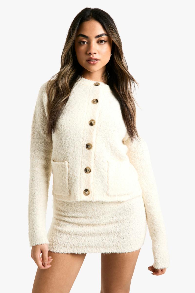 В’язаний укорочений кардиган із кишеньковими деталями та міні-спідниця з низькою посадкою Borg