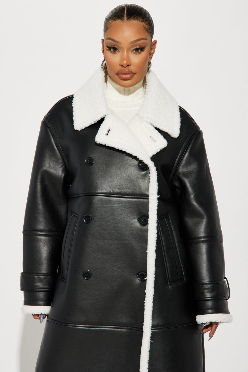 Елегантний тренч з високоякісної штучної шкіри. Повністю утеплений хутром для максимального комфорту в холодну погоду. Застібається на ґудзики, має стильний комір із овчини. Чудовий вибір для створення вишуканого образу.