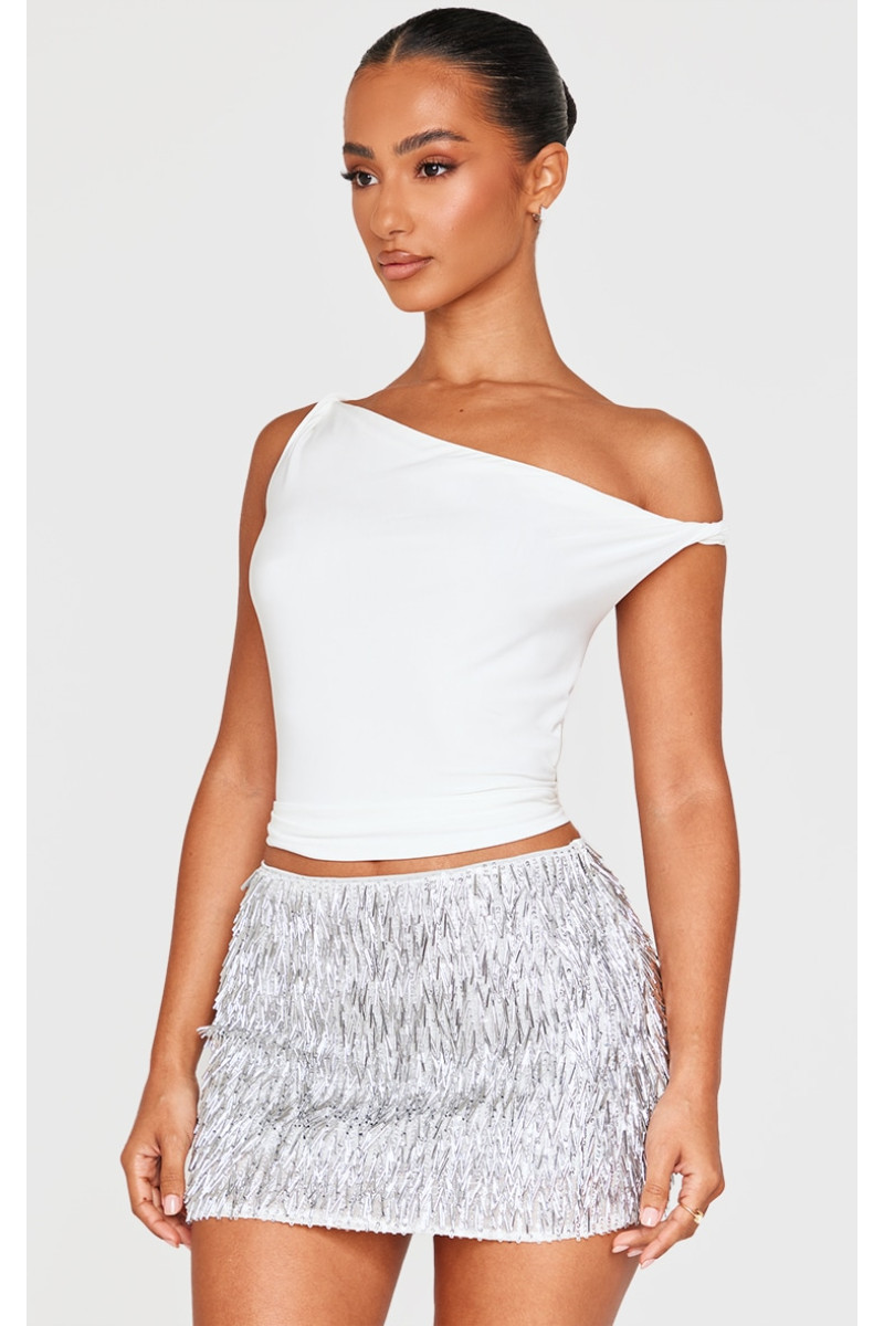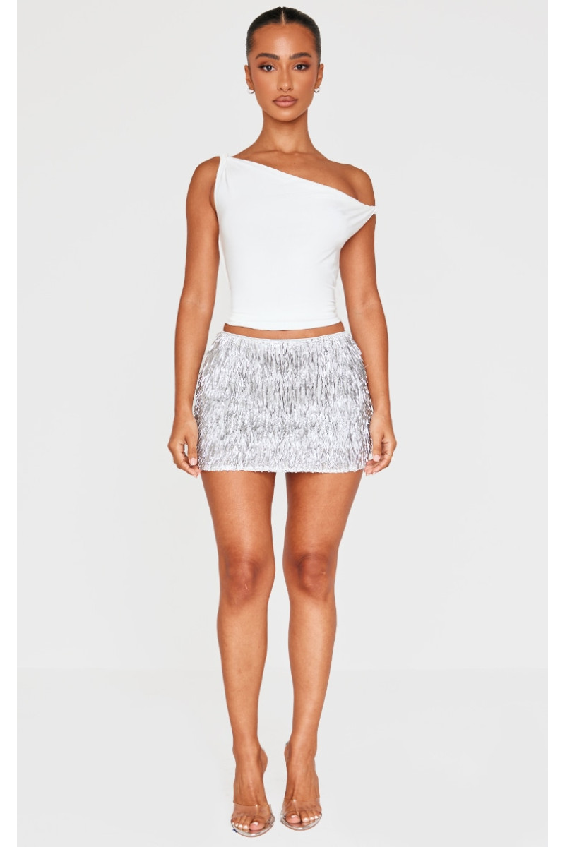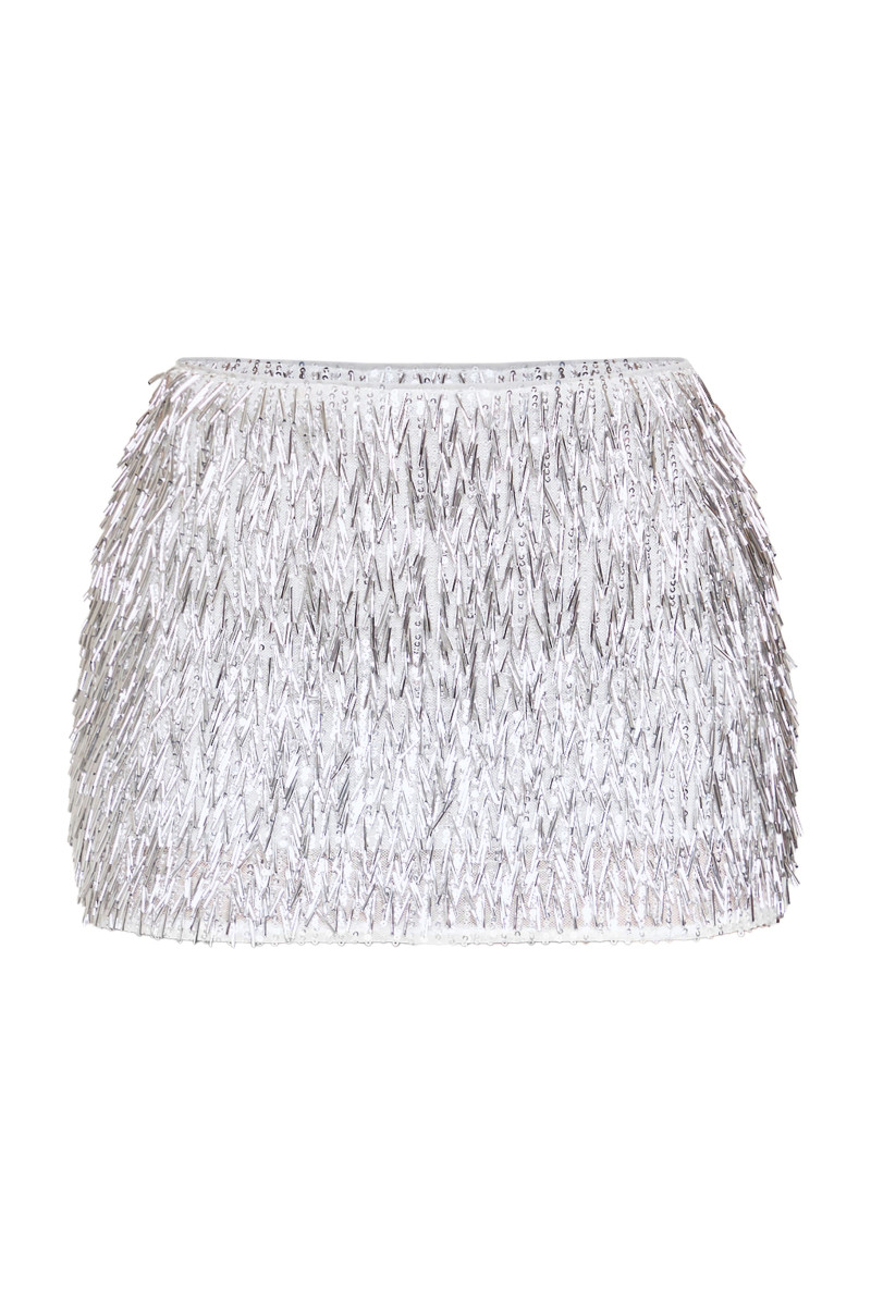 З цією мініатюрною сріблястою міні-спідницею з китицями ми щойно спростили укладку на вихідних. Ця спідниця в яскравому сріблястому відтінку, з розкішним дизайном з китицями та приємним міні-кроєм — це те, що вам потрібно. Додайте туфлі на підборах і мінімум аксесуарів, щоб виглядати неперевершено. Довжина приблизно 33 см/13 дюймів (на основі розміру вибірки UK 6) На моделі одягнено розмір UK 6/ EU 34/ AUS 6/ US 2. Зріст моделі — 5 футів 2 дюйма. Категорія: Низ. Тип продукту: міні-спідниця. Колір: сріблястий.