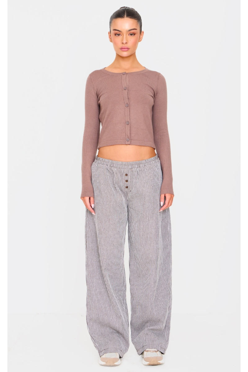 Вам не доведеться жертвувати стилем заради комфорту з цими м’якими тканими боксерськими штанами з прямими штанинами в коричневу смужку з поясом. Представлений вам у сезонному коричневому відтінку, з дизайном у смужку, розкішним м’яким тканим матеріалом і приємною деталлю боксерського пояса. Що не варто любити? Коричневий кардиган і кросівки створюють шикарний вигляд, який нам подобається. Довжина приблизно 76 см/30 дюймів (на основі розміру вибірки UK 8) На моделі одягнено розмір UK 8/ EU 36/ AUS 8/ US 4. Зріст моделі — 5 футів 6 дюймів. Категорія: Низ. Тип продукту: Штани з прямими штанинами. Колір: коричневий.