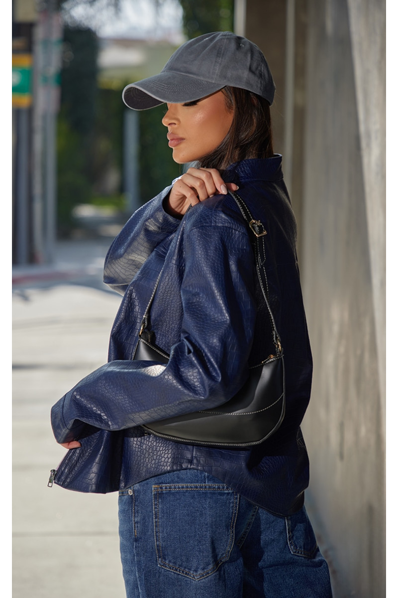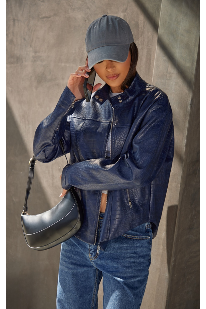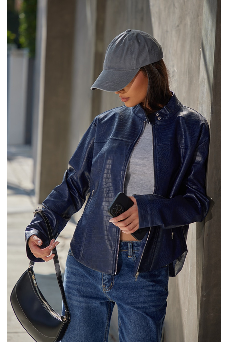 Привітайтеся зі своїм новим елементом стилю за допомогою цієї темно-синьої куртки зі штучної шкіри під крокодил. Представлений вам у темно-синій штучній шкірі з крокодильним малюнком і застібкою-блискавкою. Чого ще ви бажаєте? Поєднайте цю куртку з парою джинсів, сумкою через плече та вашим улюбленим капелюхом для образу, про який усі говорять. Довжина приблизно 48 см/19 дюймів (на основі розміру вибірки UK 8) На моделі одягнено розмір UK 8/ EU 36/ AUS 8/ US 4. Зріст моделі — 5 футів 5 дюймів. Категорія: Верхній одяг. Тип продукту: Куртка. Колір: темно-синій.