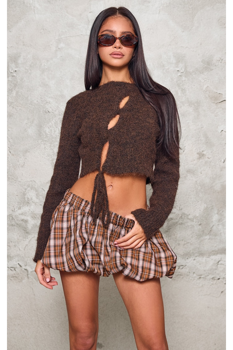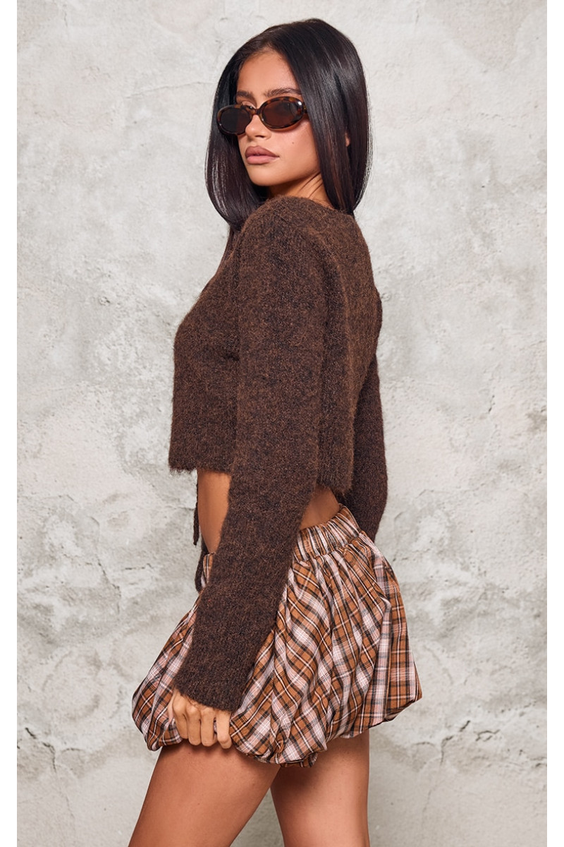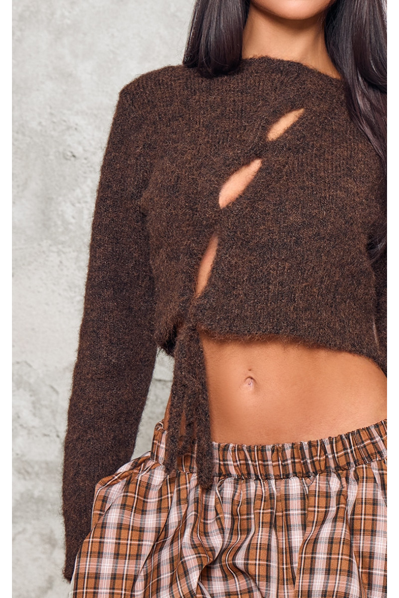 Зробіть цей мініатюрний шоколадний пухнастий трикотажний джемпер із вирізаними деталями вашим улюбленим у новому сезоні. Пухнастий в’язаний матеріал шоколадного відтінку з вирізами та укороченим кроєм, цей мініатюрний джемпер обов’язково доповнить будь-який образ затишною атмосферою. Стиль із міні-спідницею та черевиками на підборах створить образ, який гарантовано приверне увагу. Довжина приблизно 35,5 см/14 дюймів (на основі зразкового розміру XS) Модель носить розмір XSModel Height – 5 футів 4 дюйми Категорія: Трикотаж Тип продукту: КардиганКолір: ШоколадМатеріал: ТрикотажДизайн: Рівний Виріз: Круглі рукави: ДовгіВипадок: День