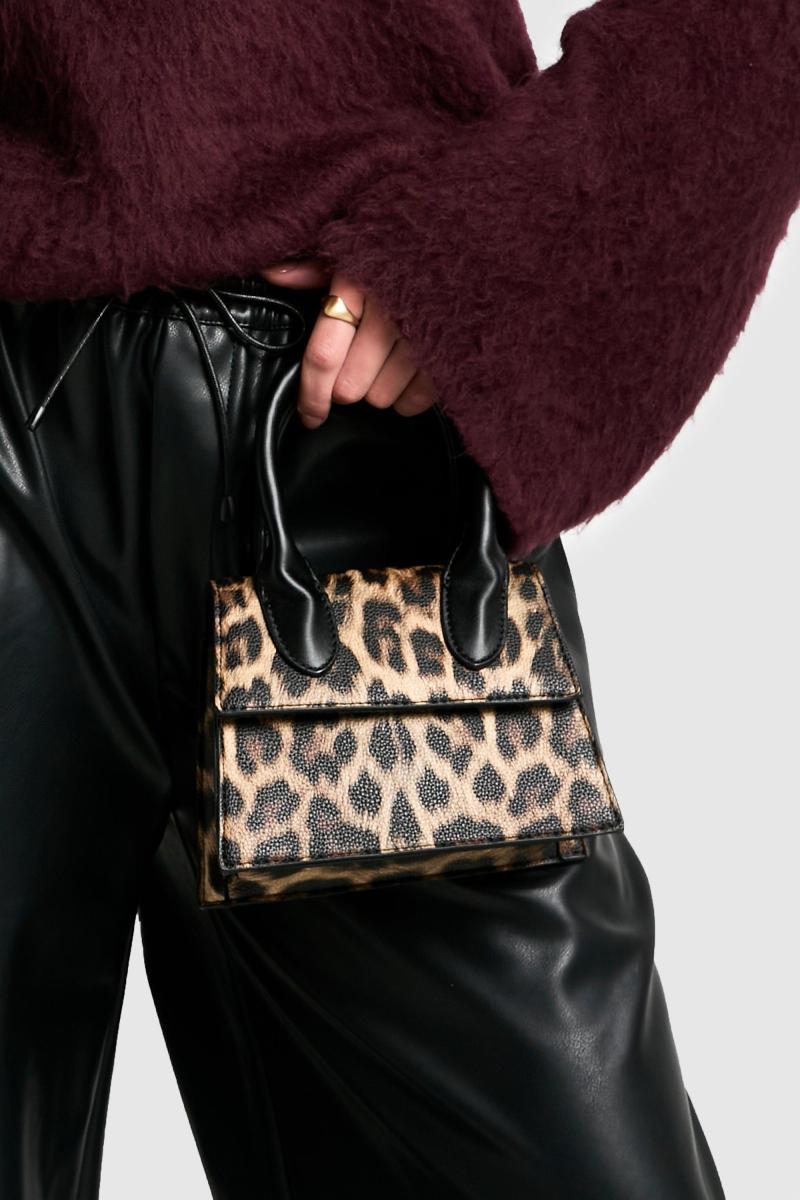 Контрастна сумка з леопардовим ремінцем на ланцюжку