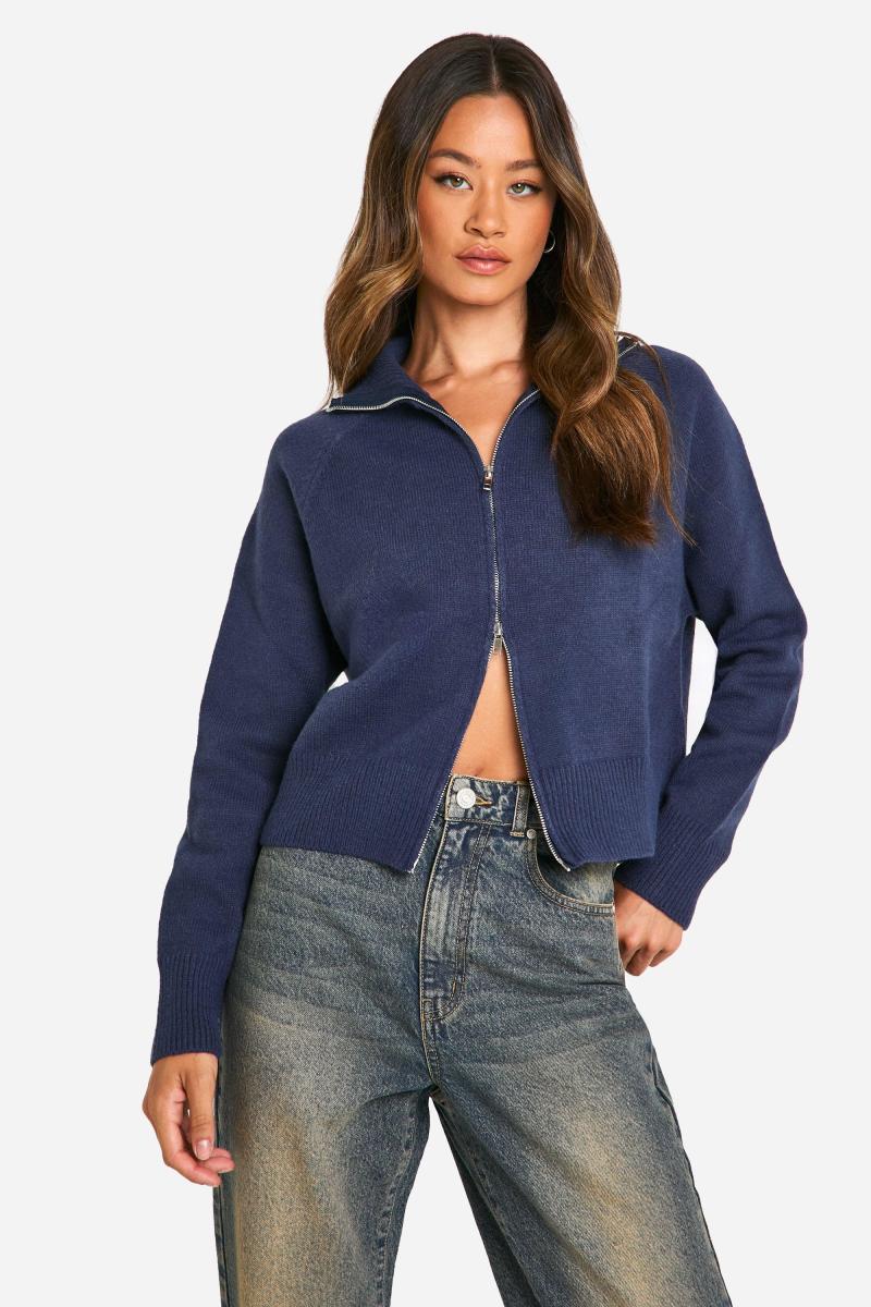 Високий кардиган із круглим вирізом і застібається на блискавку