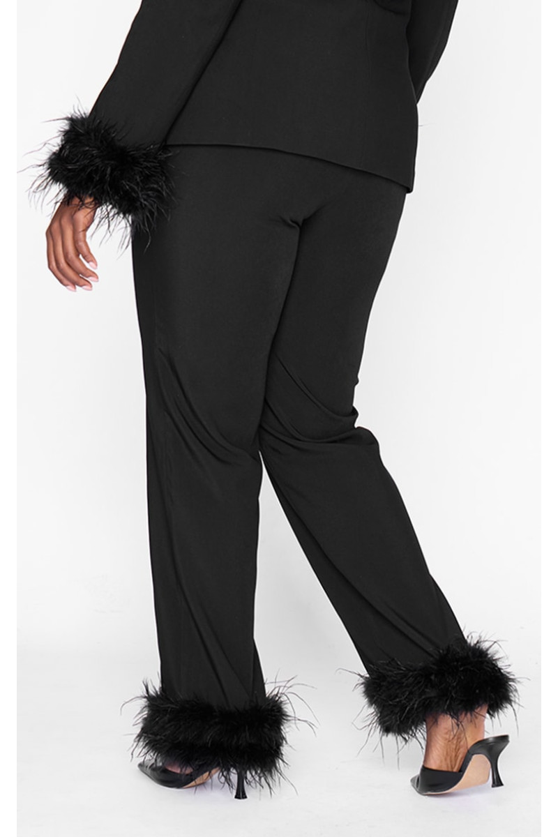 Ці чорні покройні штани з оздобленням пір’ям обов’язково стануть вашим бажанням у наступні вихідні. Представлені вам у шикарному чорному відтінку, з розкішним дизайном оздоблення пір’ям і приємним фасоном, ці штани викликають ваше ім’я. Поєднайте відповідний піджак і туфлі на підборах для миттєвого піднесення. Довжина приблизно 86 см/34" (на основі розміру вибірки UK 16) На моделі одягнено розмір UK 16/ EU 44/ AUS 16/ US 12. Зріст моделі — 5 футів 9 дюймів. Категорія: Співвідносні. Тип продукту: Штани з прямими штанинами. Колір: чорнийМатеріал: Ткане на замовлення. Випадок: вечір