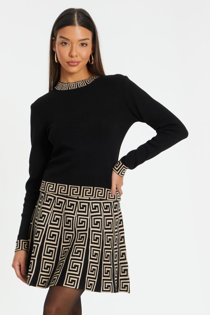 Цей в'язаний перемичка має геометричний дизайн оздоблення та круглу шию, що забезпечує затишну форму, придатну для осіннього та зимового одягу. Ідеально підходить для перехідного робочого одягу або випадкових виїздів.